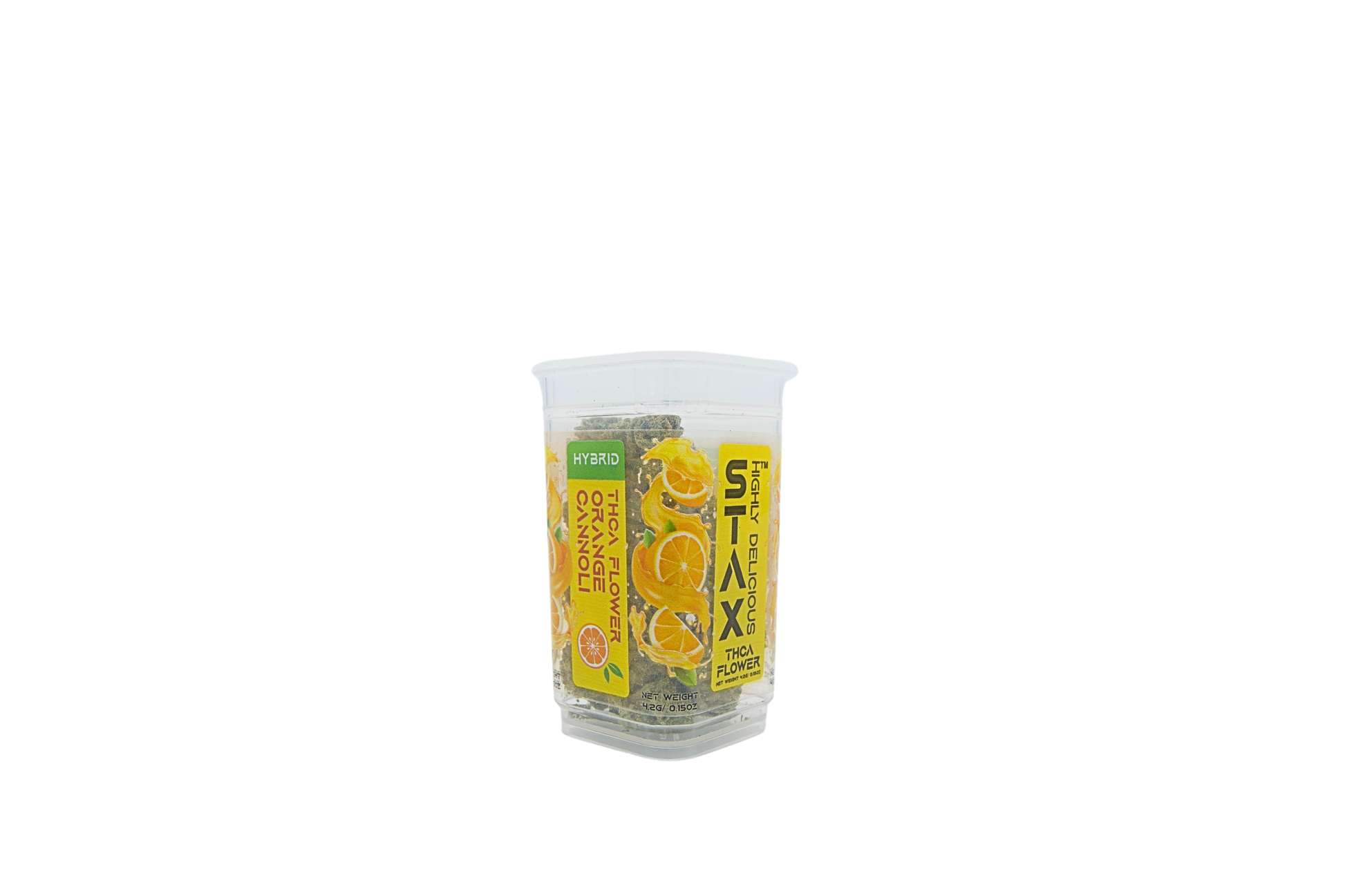 A 60/40 sativa hybrid from Tropicanna Cookies × Don Mega, Orange Cannoli delivers an uplifting, creative high perfect for artists, musicians, and anyone seeking focus and inspiration. With sweet orange cookie flavors and a nutty, diesel aroma, it’s both energizing and social — ideal for daytime use. Typically testing around 22–24% THC, this strain may support mood, creativity, and relief from fatigue, stress, and pain.
